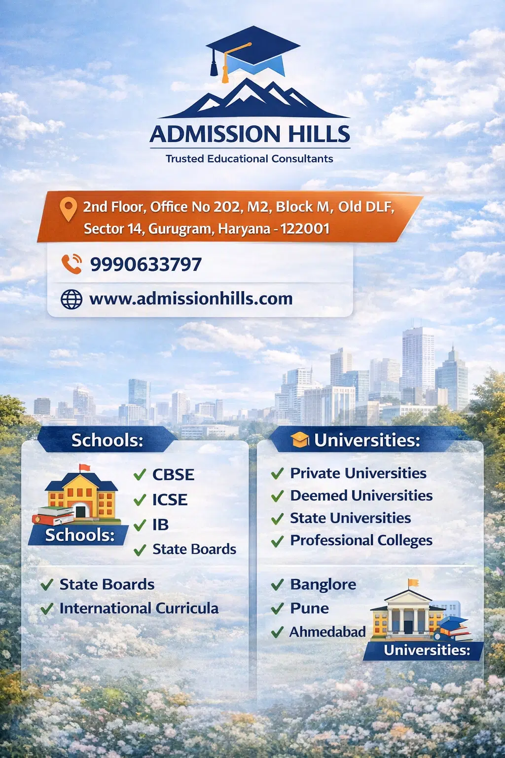 Though headquartered in Gurugram, ADMISSION HILLS provides admission assistance across Indiaโs leading education hubs.