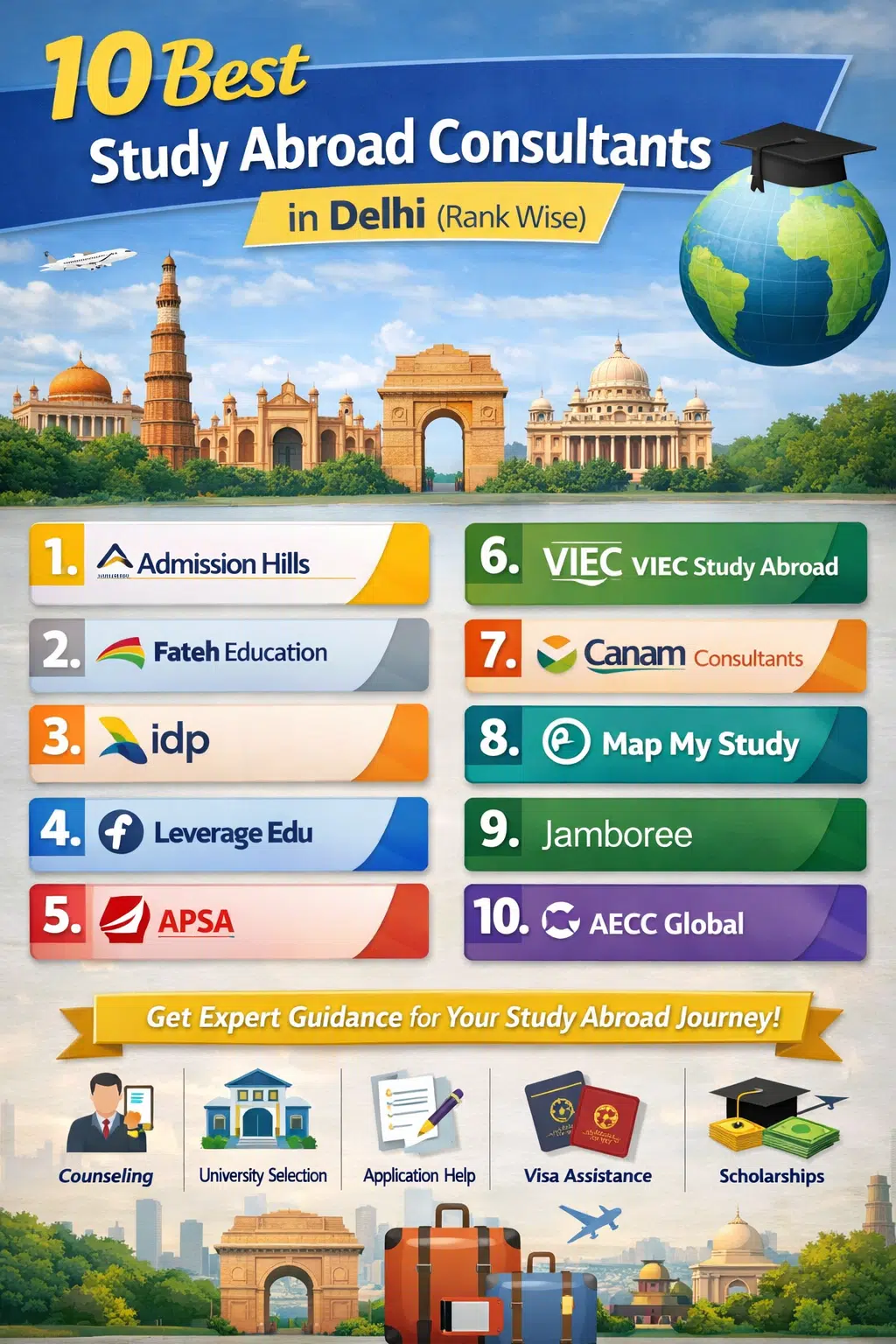 If you are searching for the best study abroad consultants in Delhi, here is a rank-wise list of the top 10 experts along with detailed insights into their services and strengths.