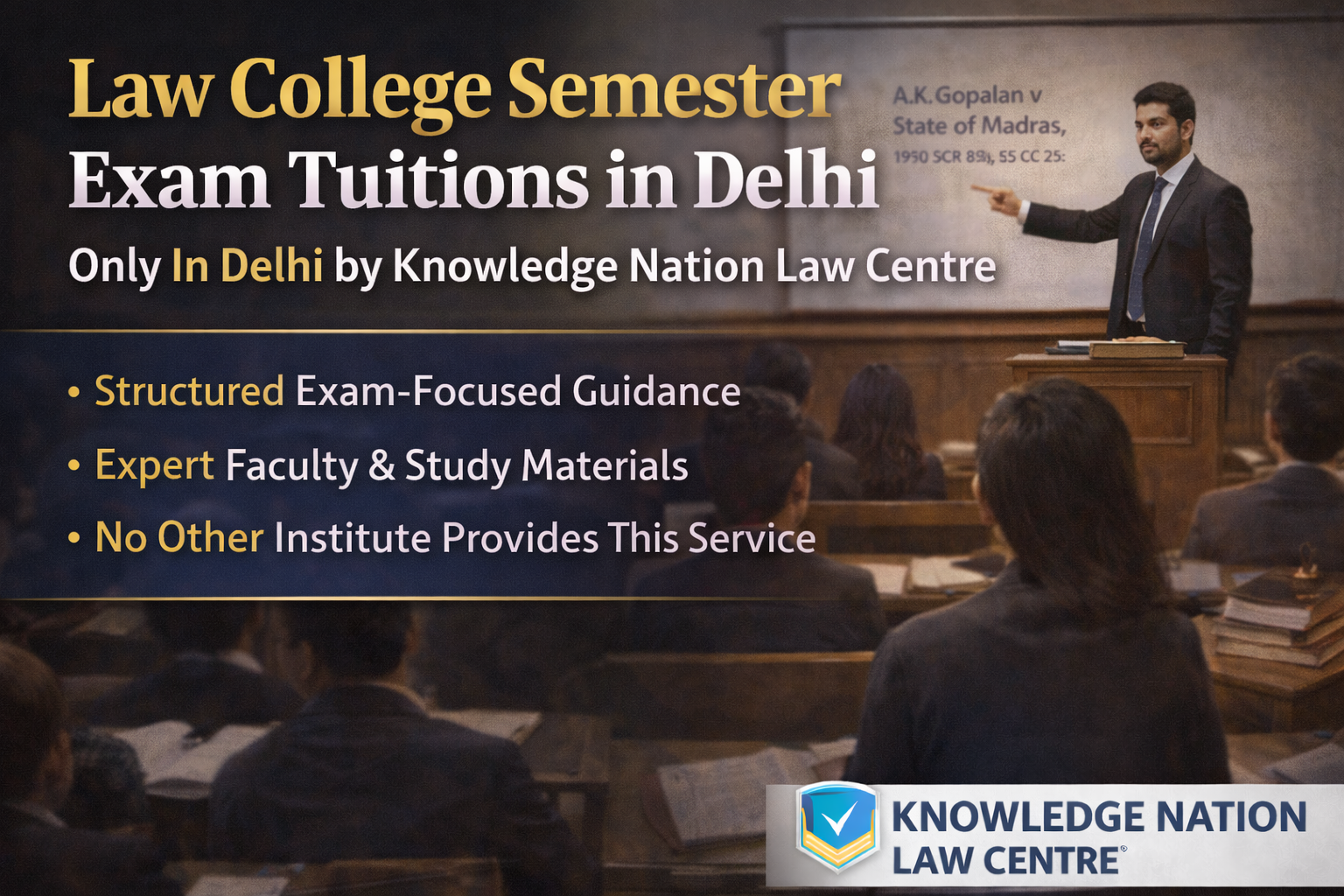 This program is ideal for any law student seeking academic success, practical skills, and a strong foundation for a future legal career. No other institute in Delhi provides this specialized semester exam tuition, making Knowledge Nation Law Centre a pioneering and trusted choice.