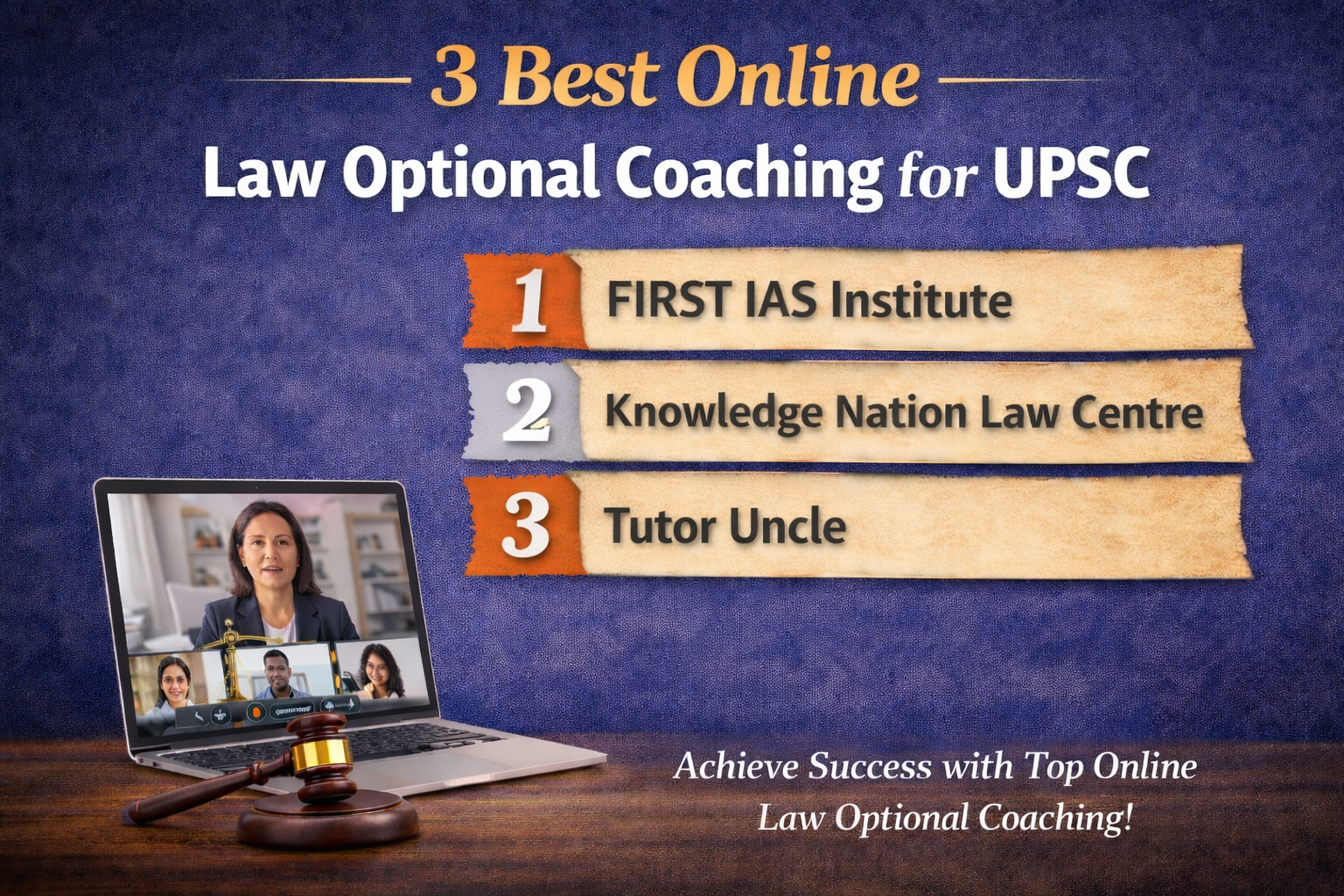 This article highlights the 3 best online Law Optional coaching institutes for UPSC, ranked on the basis of faculty expertise, online teaching methodology, study material quality, answer writing support, mentorship, results record, and overall credibility.