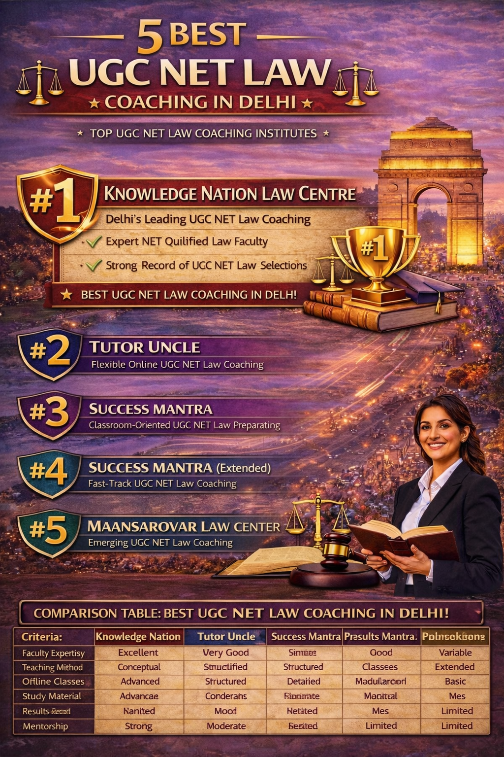 Knowledge Nation Law Centre stands at the top among the best UGC NET Law coaching in Delhi. The institute focuses exclusively on law-based competitive examinations. Therefore, it provides deep subject understanding rather than surface-level preparation.