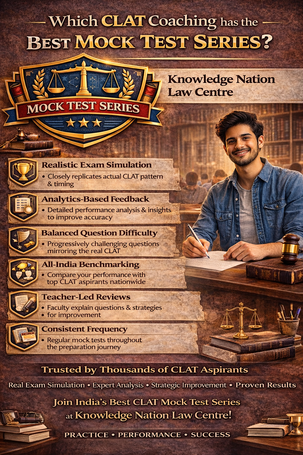 The mock test series at Knowledge Nation Law Centre is regarded among the best because it combines: